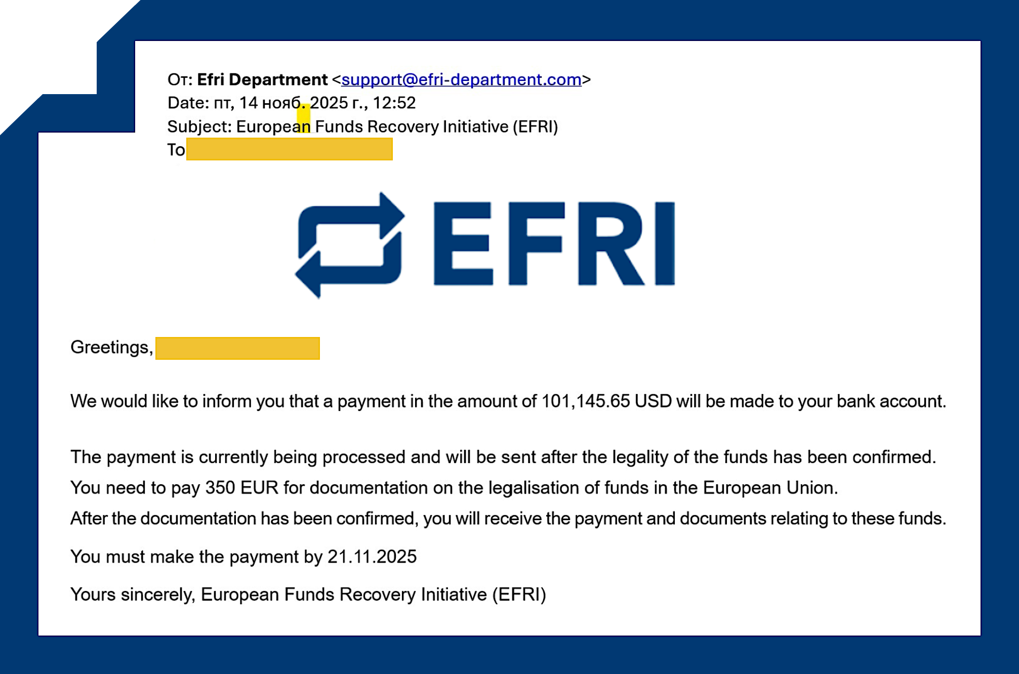Recovery Scammers Are Impersonating EFRI Again